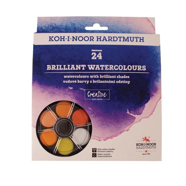 Koh-i-Noor Anilinky Brilliant Watercolour Set Water soluble and bleachable Brilliant shades for specialist art techniques 4 Disks / Palettes presented in a box 24 intense colours