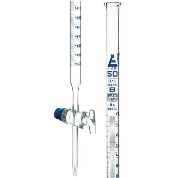 Burettes – Glass Key Capacity 50ml Sub. Div.0.10ml Tolerance ± 0.10ml, class-B, Blue Graduation (Each)