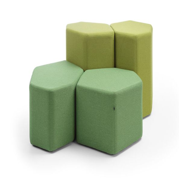 Irregular hexagonal form seats in two heights. Can be freely combined in infinite arrangements.