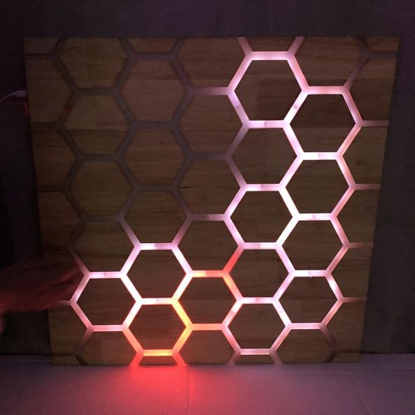Introducing our Honey Comb Touch Interactive Panel – A unique sensory experience awaits. Simply glide your hand over the comb-shaped patterns to witness a captivating interplay of moving lights and colours. This interactive feature not only engages the senses but also adds an artistic touch to any space. Elevate your environment with the seamless fusion of touch, movement and vibrant hues, creating a dynamic visual experience on your wall