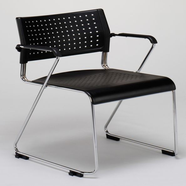Kraft Sled Frame Black Plastic Sidechair with Arms