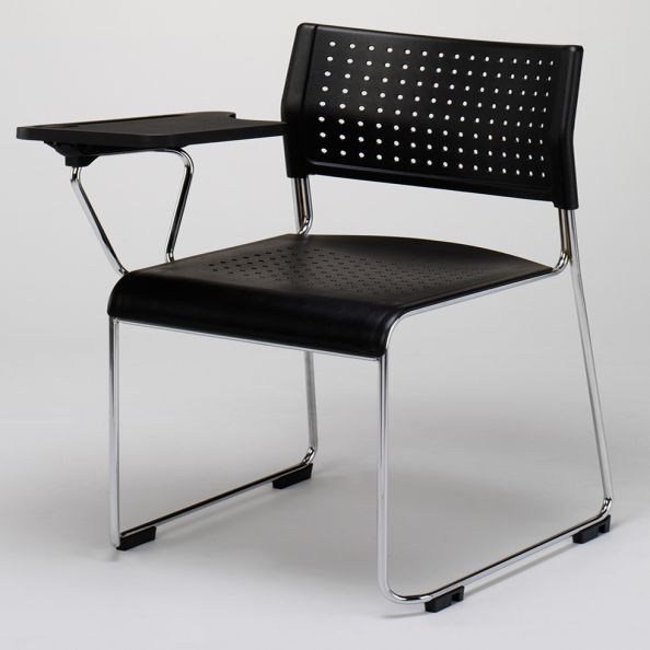 Kraft Sled Frame Black Plastic Sidechair with Writing Tablet