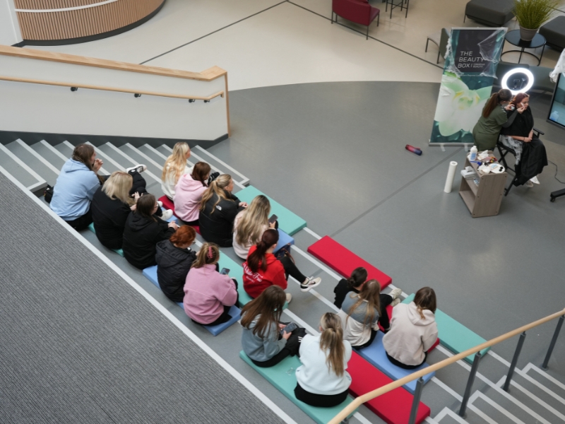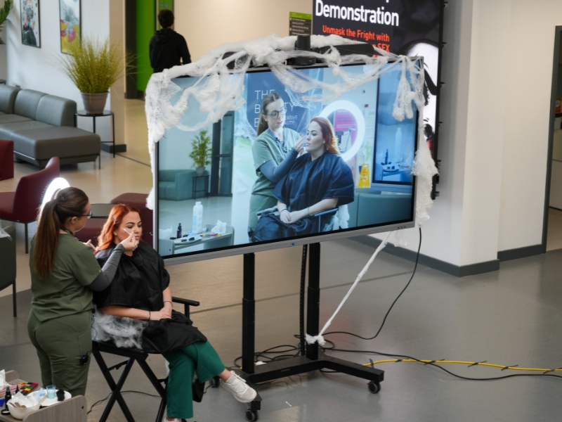 The design also lends itself perfectly to interactive talks and demonstrations. Sharon explained how the Beauty Therapy department recently hosted a Halloween FX makeup demonstration, inviting all students to watch. Because it’s in such a communal open space, it attracts a lot of attention from across the college. It’s very inclusive and helps students feel comfortable and engaged.