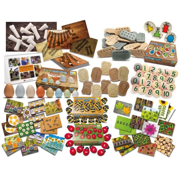 All these resources work well independently or alongside each other and other natural materials, encouraging a range of collecting, counting and comparing activities. Important maths language will be inspired as children naturally play, problem-solve and investigate number, shape and measures. Taking maths learning outside provides plenty of opportunities for cross-curricular activities and continuous provision.Kit includes: Jumbo Number Pebbles, Tactile Counting Stones, Feels-Write Number Stones, Size-Sorting Eggs, Sorting Stones, Ladybug Counting Stones, Ladybug Early Number Cards, Honey Bee Number Stones, Honey Bee Early Number Cards, Dinosaur Match and Measure Bones, Dinosaur Match and Measure Cards, Let’s Talk About Maths – exciting ideas to develop children’s maths language