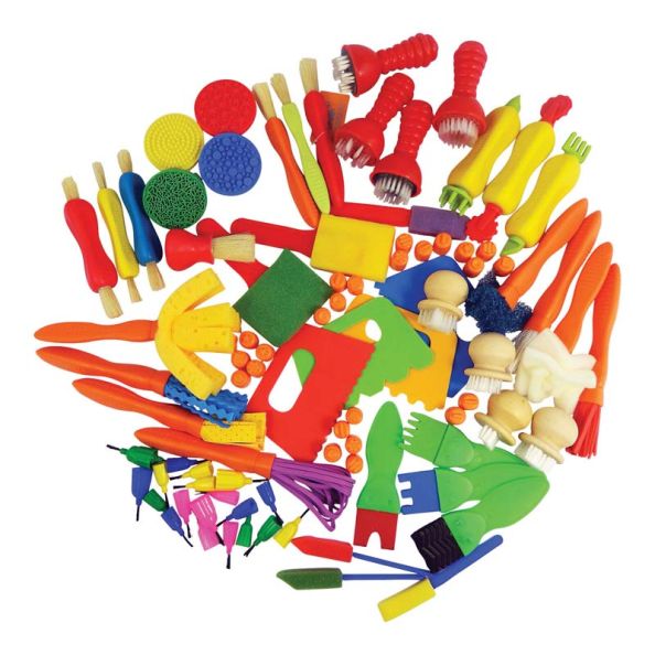 Young children will love choosing from these painting and pattern making tools to explore mark making on a grand scale! 1 x Easi-grip brush (size 10, 14 and 18) 3 x Easi-grip double ended brushes 3 x Easi-grip double ended dough and paint tools Easi-grip brushes 4pk 1 x Easi-grip giant brush Easi-grip mini texture wands Set 1 - 4pk Easi-grip mini texture wands Set 2 - 4pk Special paint effect tools 4pk Sand and paint pattern tools 6pk Paint scrapers 4pk Finger brush painters 20pk Creative brushes 4pk Dabbers 3pk Finger painters 24pk Contents may vary