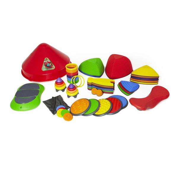 Bring all the senses into play! This motor-skills development set comprising of the best Gonge products, is designed to enhance motor, cognitive and social skills and also to stimulate the senses and awareness of colours. The set provides ample opportunity for fun play, both individually and in groups. This carefully selected set contains the following products: FloorSurfer, Giant Top, Clown's Hat, Seesaw, Activity Rings, Tactile Discs, River Stones, Hill Tops, and the River.