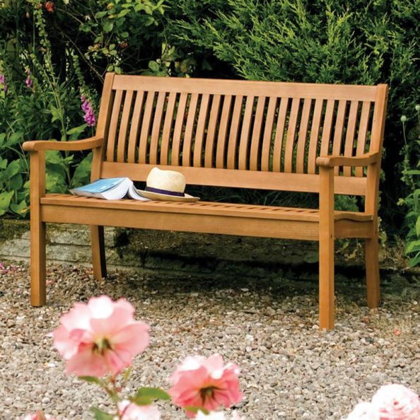 Hardwood construction. Shaped seat and back rest for comfort. Seats up to two people. Easy assembly. Factory stain finish Width 1200mm