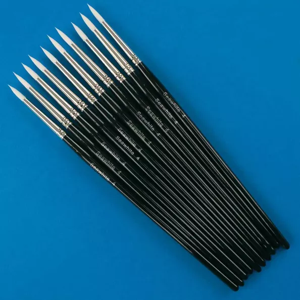 White Synthetic Brush Versatile tapered white synthetic hair Ideal for light and heavy paints Short Handles Round Tip 10 x Size 4 brushes